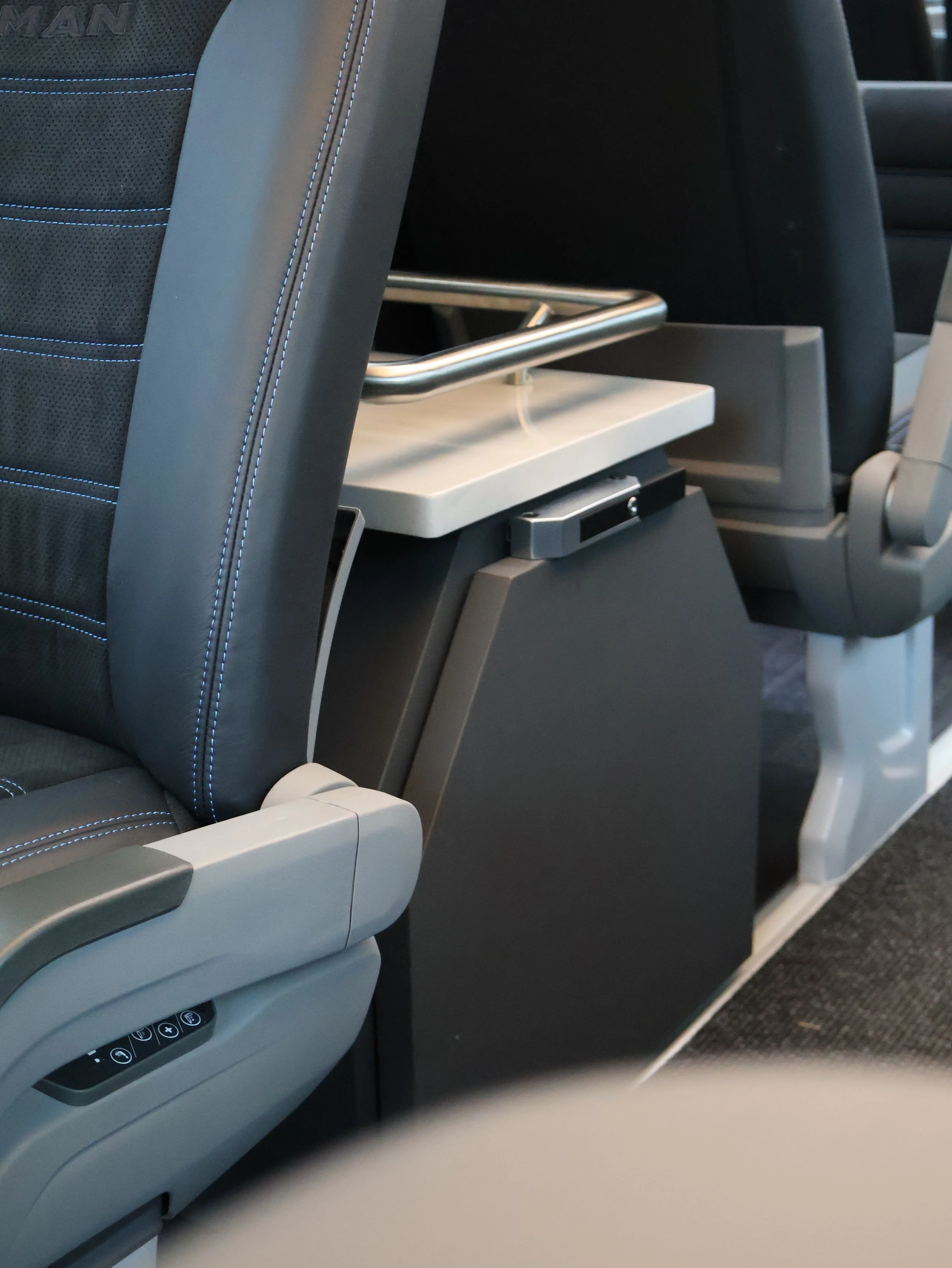 Mit unseren Clubtischen bietest du deinen Fahrgästen eine gesellige Sitzrunde – feststehend oder elektrisch absenkbar. Für die meisten Fahrzeugmodelle sind feststehende Tischgestelle erhältlich, die ohne Beschädigung am Fahrzeug montiert werden können.